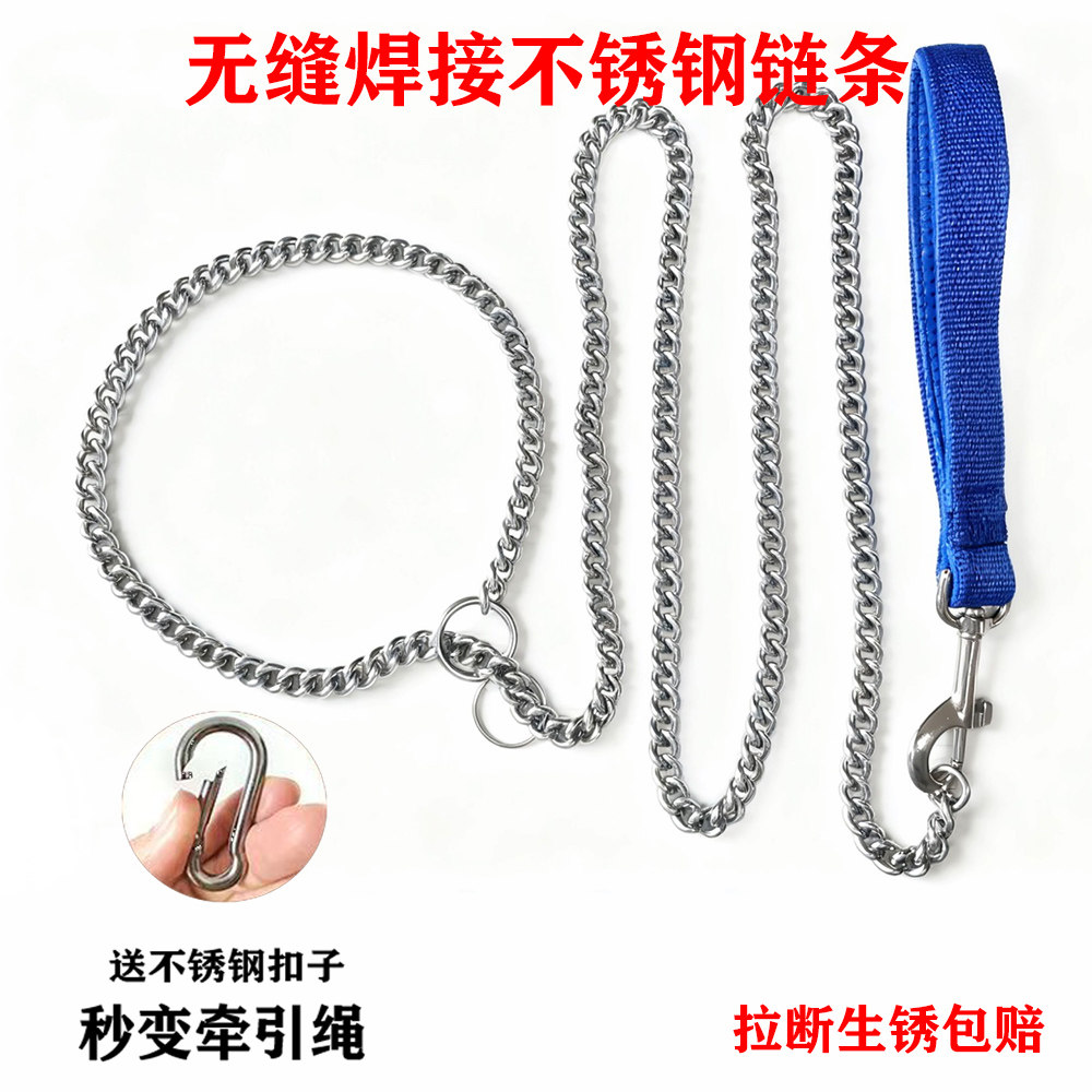 304不锈钢狗链大型犬防爆牵引链条栓狗必备防咬链子无缝遛狗锁扣