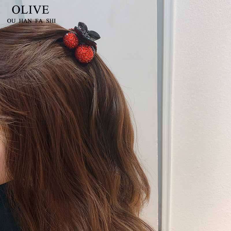 镶钻樱桃发夹小抓夹轻奢时尚刘海发抓红色满钻鲨鱼夹百搭简约发卡