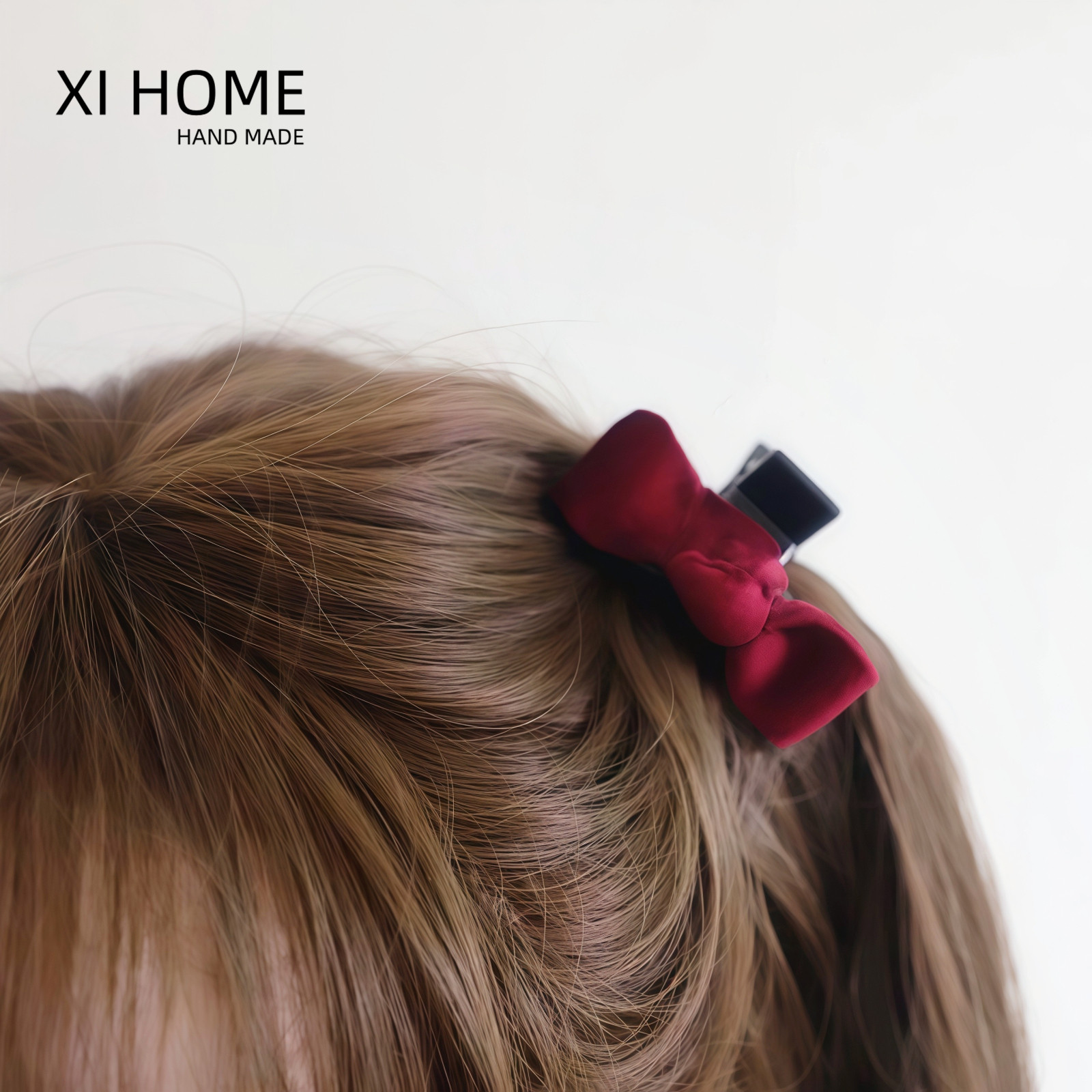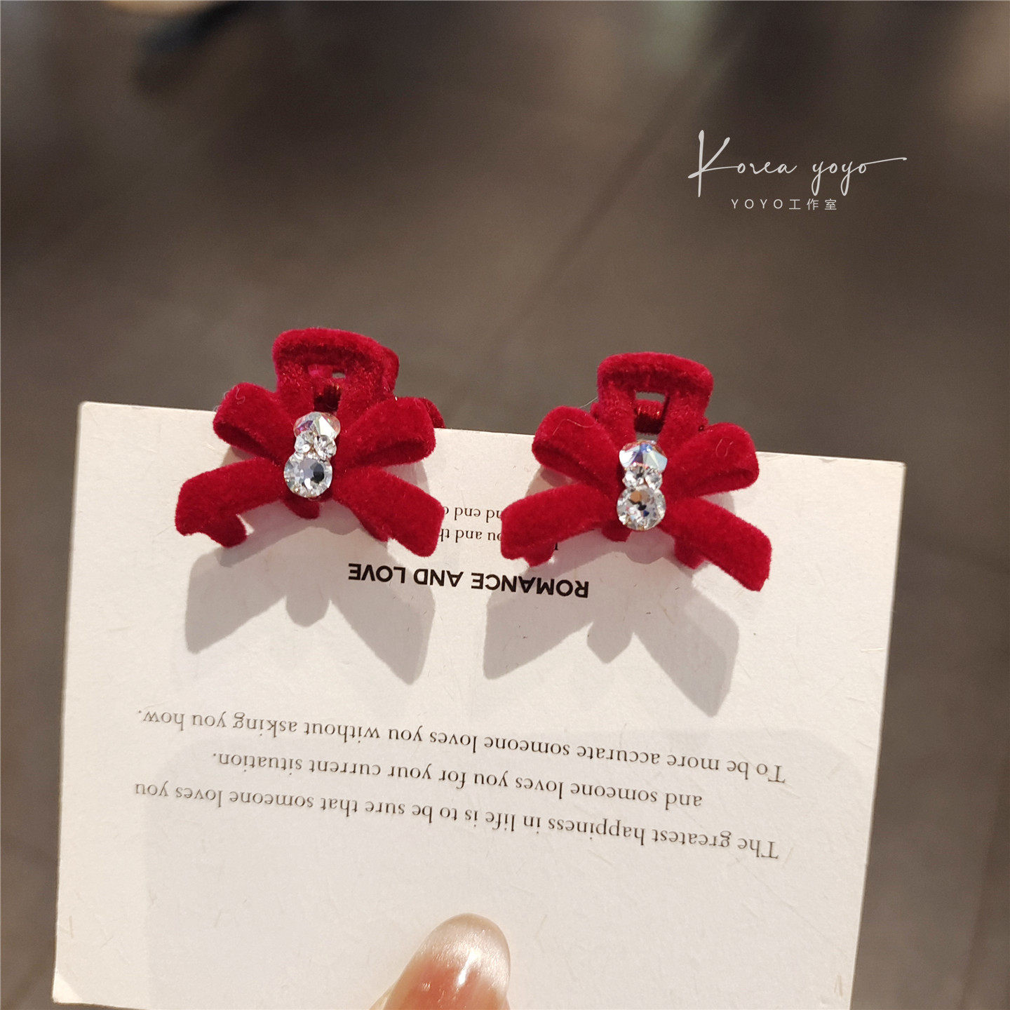 日韩新款酒红丝绒蝴蝶结抓夹韩版公主头夹子小号前刘海发抓发卡女