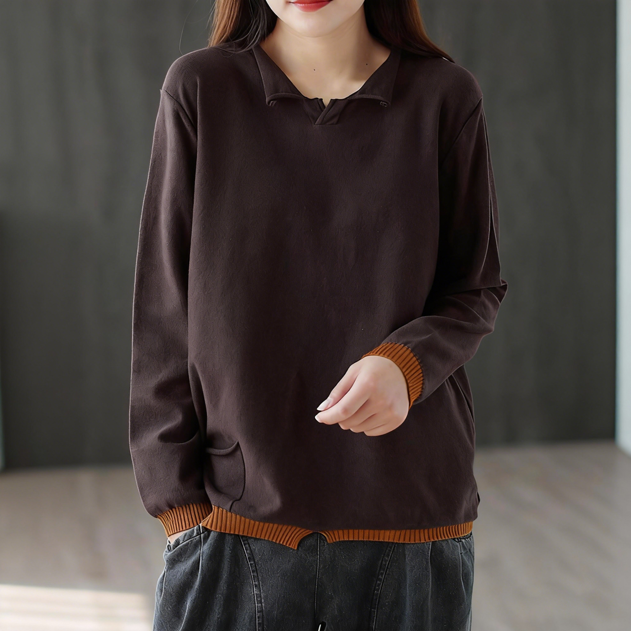 秋季新款女装棉麻长袖v领纯色打底上衣宽松套头休闲大码针织衫女