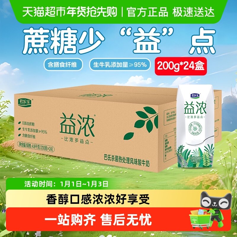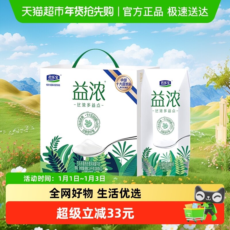 11月君乐宝酸奶益浓酸牛奶0添加蔗糖200g*24盒整箱早餐奶膳食纤维