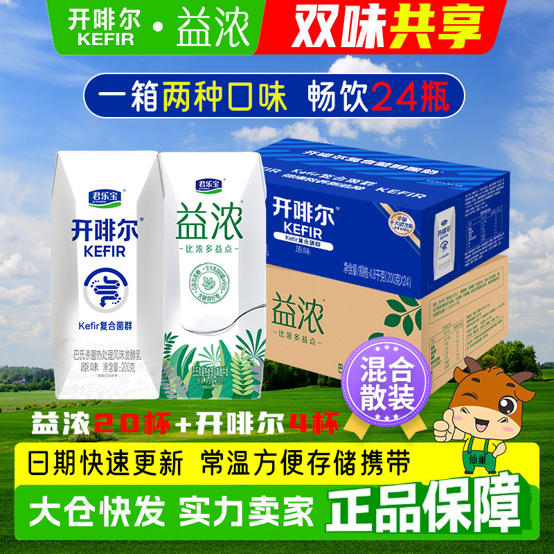 25年10月新货君乐宝酸奶开啡尔4盒+益浓20盒散装组合酸奶