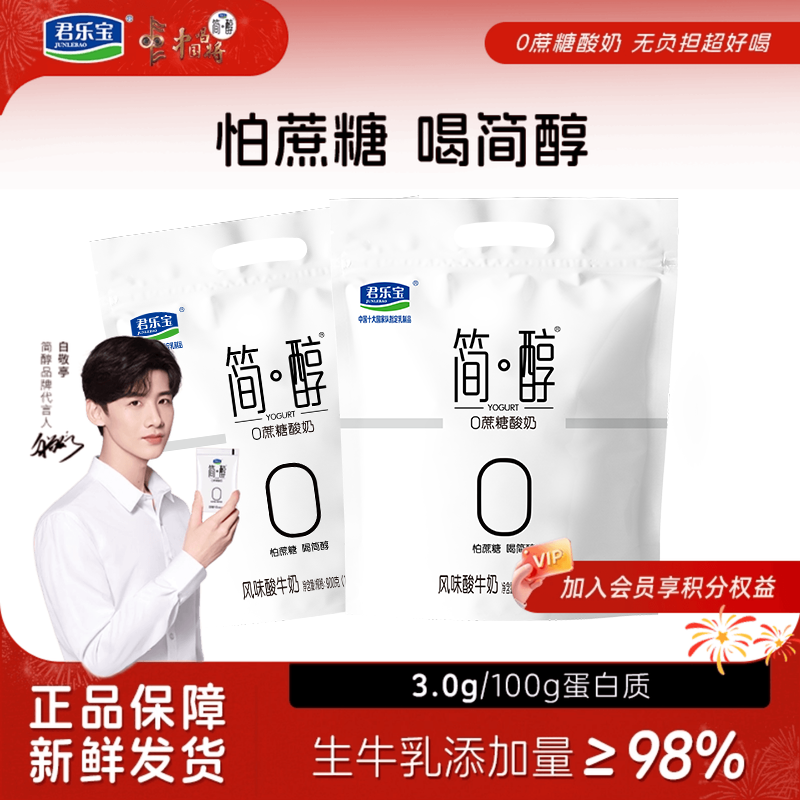 君乐宝简醇0添加蔗糖酸奶无非脱脂健身袋装风味酸牛奶官方旗舰店