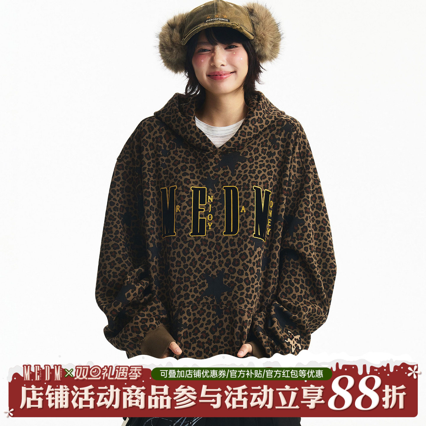MEDM 个性满印豹纹迷彩休闲连帽卫衣秋冬季美式通勤男女宽松帽衫