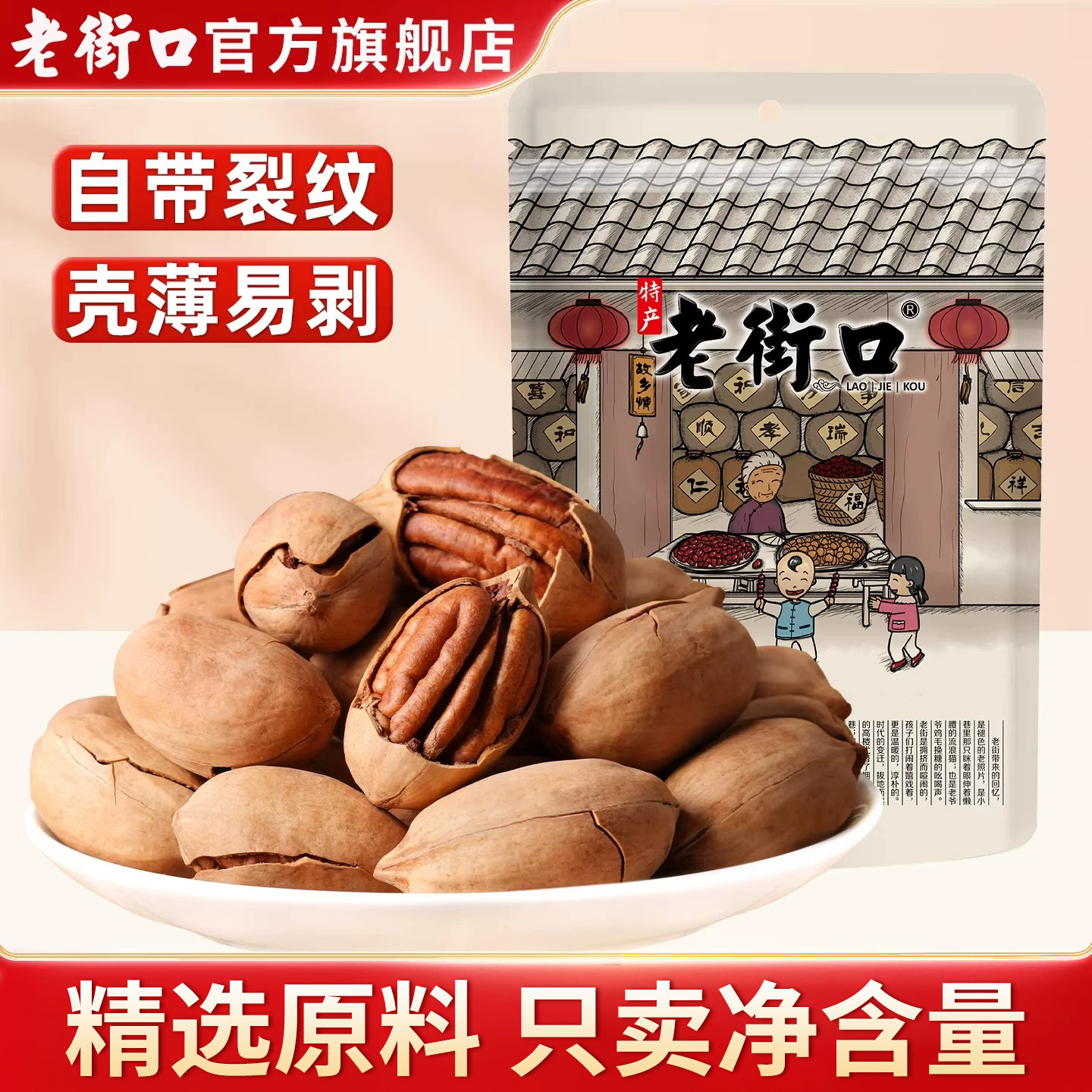 老街口奶油味碧根果500g碧根果仁长寿果干果坚果散装休闲零食新货
