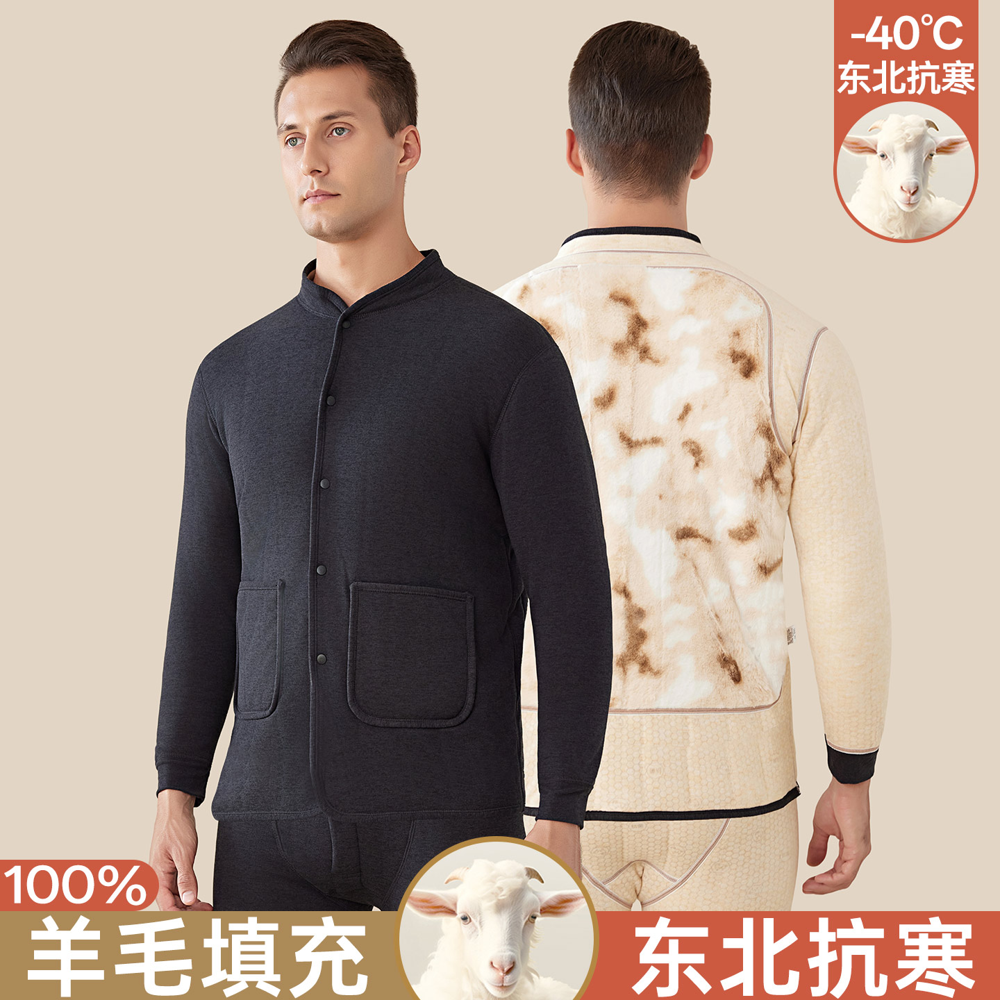 啄木鸟羊羔绒保暖内衣加厚加绒德打底中领秋衣秋裤男士套装冬季款