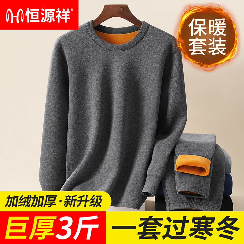 【巨厚发热】恒源祥男士超厚保暖内衣加厚加绒秋衣秋裤套装防寒冬