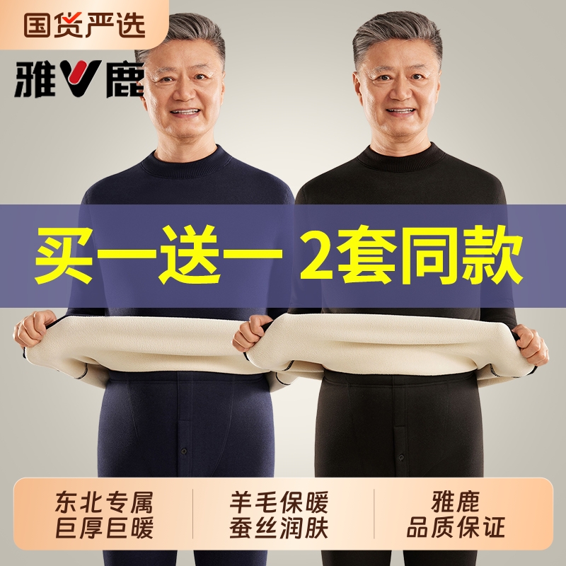 雅鹿男士保暖内衣加厚加绒秋衣秋裤套装男款羊绒蚕丝发热秋冬季男