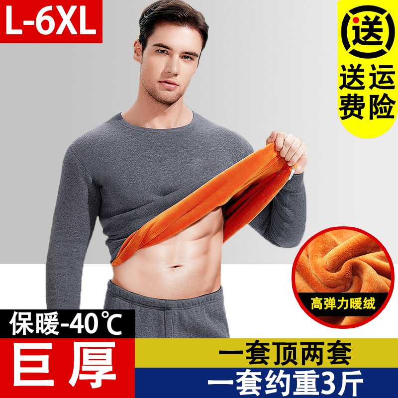 大码男士保暖内衣加厚加绒加肥加大200斤肥佬秋衣秋裤打底套装