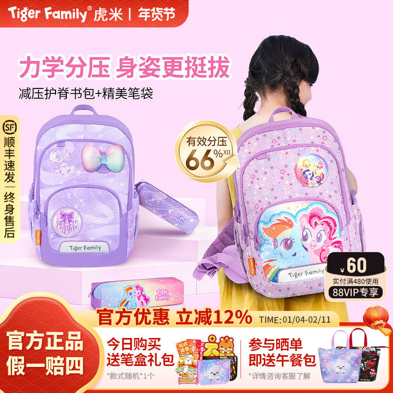 tigerfamily虎米护脊减负书包小学生1-3-5年级儿童男女孩双肩背包