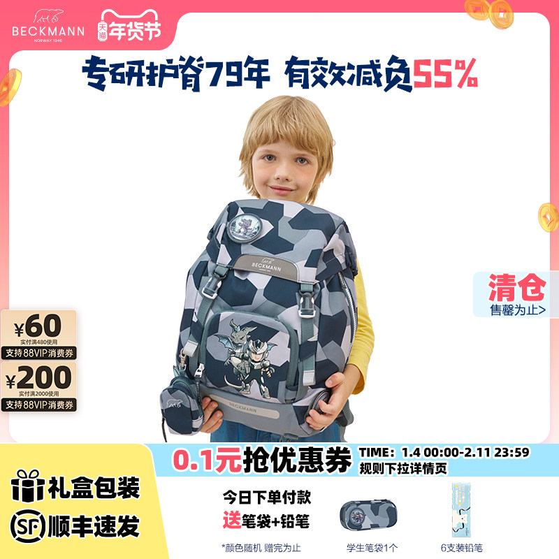 挪威Beckmann贝克曼护脊书包小学生1-3年级男女儿童减负双肩包