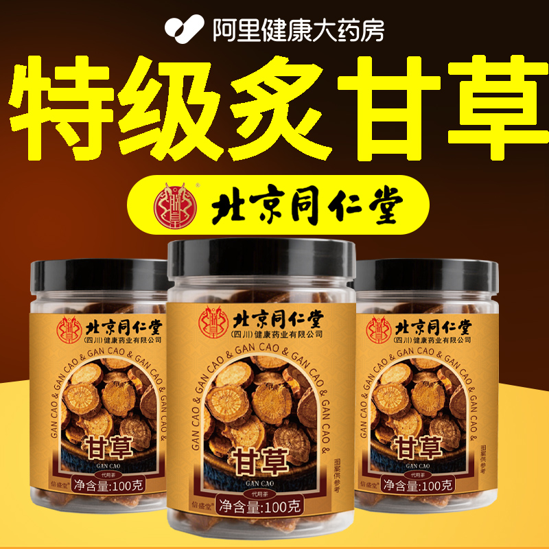 同仁堂正品炙甘草中药材特级蜜制干草泡水无硫大片选货500g原材料