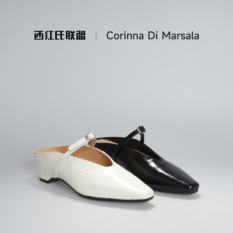 【西红氏联盟】2026春新款外牛内羊法式包头内增高气质凉拖跟高5