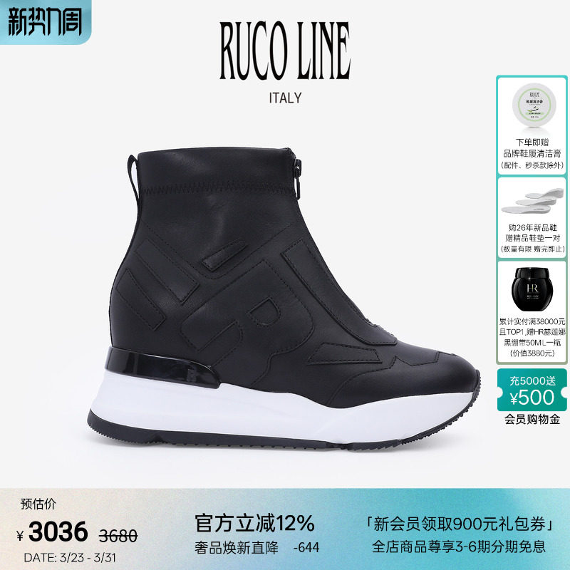 Ruco Line 新品拉链9cm内增高牛皮革跑鞋时尚短靴女羊皮内里