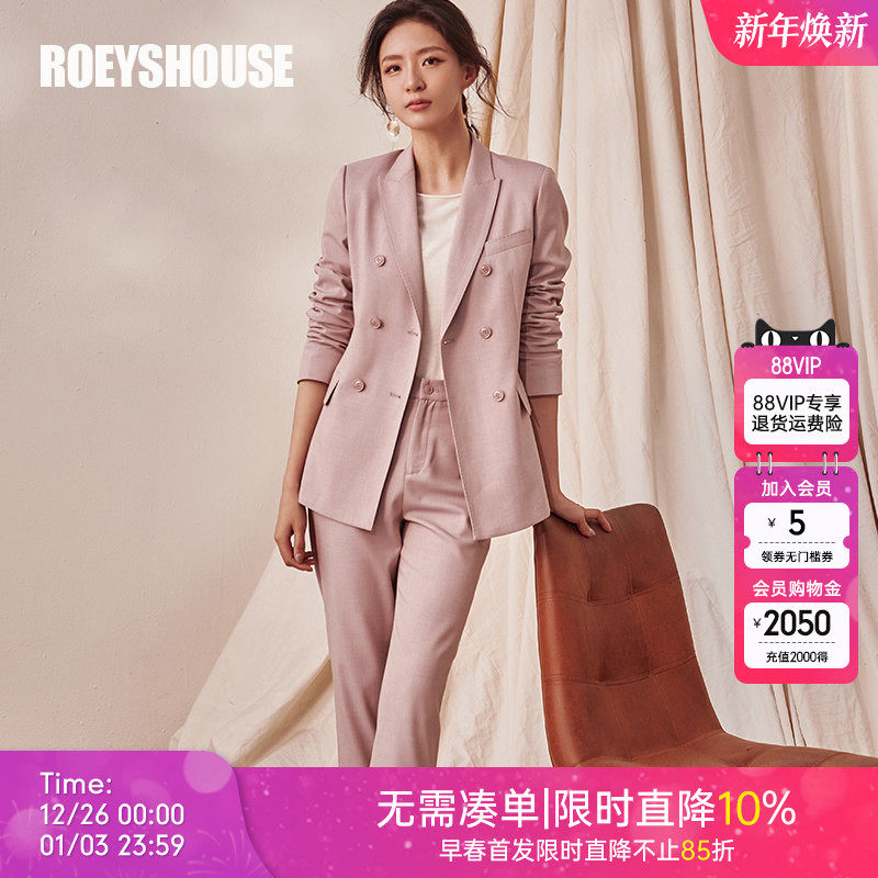 罗衣时尚职业粉色西装套装女2025秋季新款外套直筒裤两件套09373