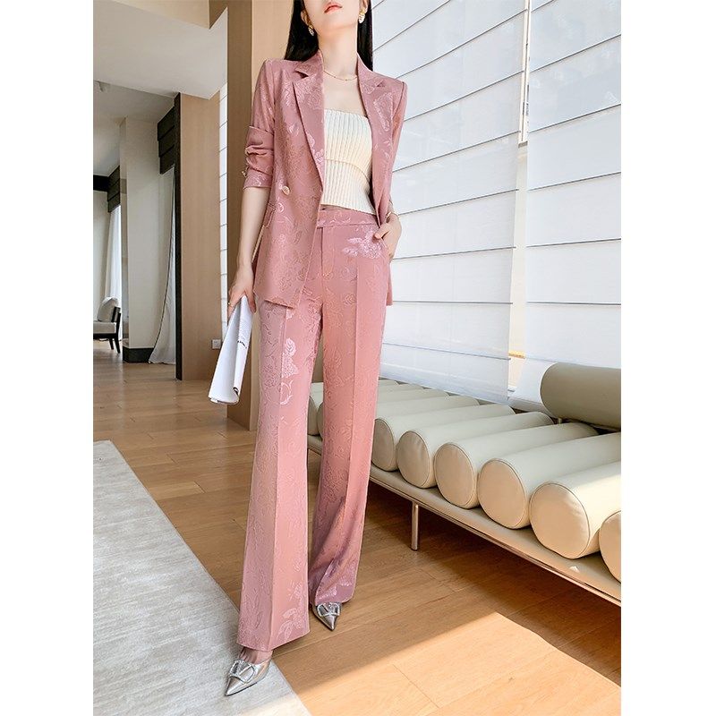 减龄秋季西装套装女微喇裤粉色主持人职业女装休闲主播商务工作服