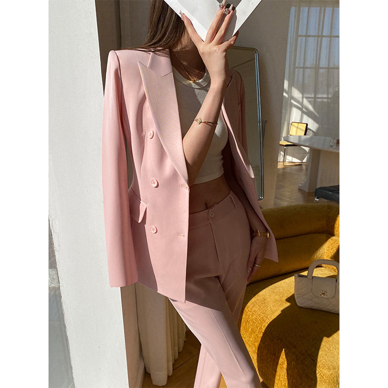 休闲时尚粉色西装套装女秋季新款高级感修身显瘦通勤气质职业西服