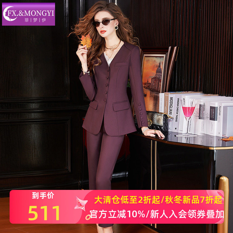 菲梦伊粉色西装套装女秋季高端通勤时尚商务职业休闲工作服两件套