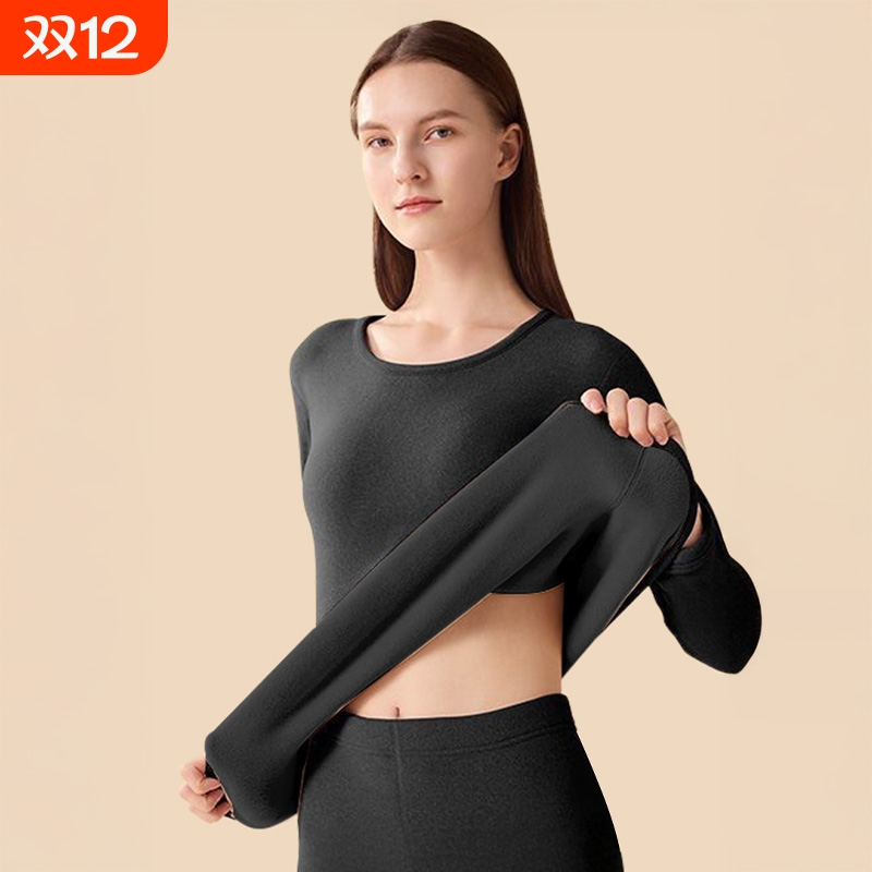 鸭鸭保暖内衣女士德绒发热秋衣秋裤套装打底加绒加厚蚕丝羊绒冬季