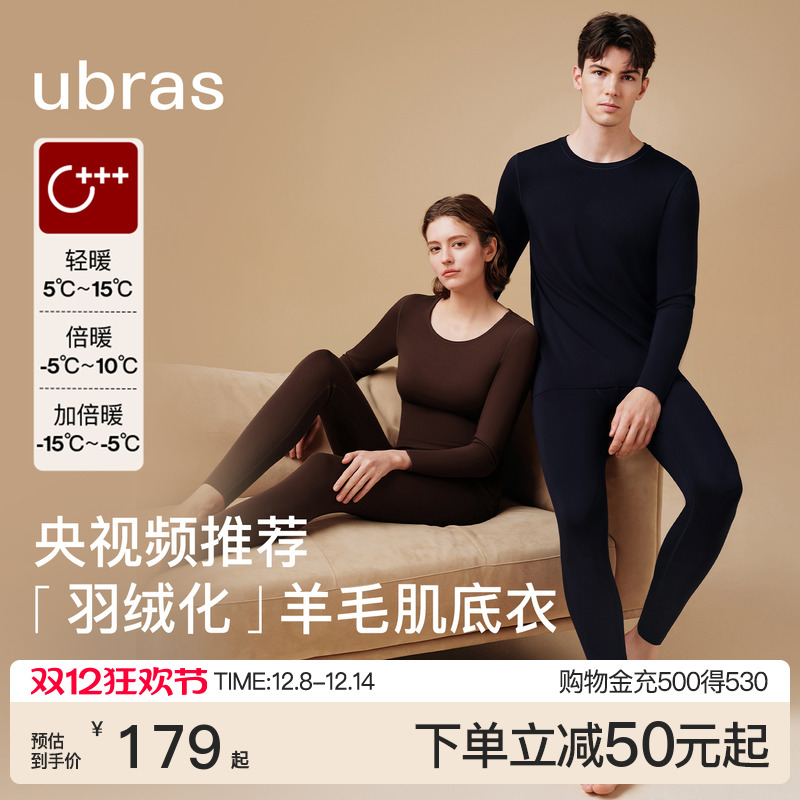 ubras加绒加厚羊毛羽绒化发热男女士保暖内衣套装肌衣底秋衣秋裤