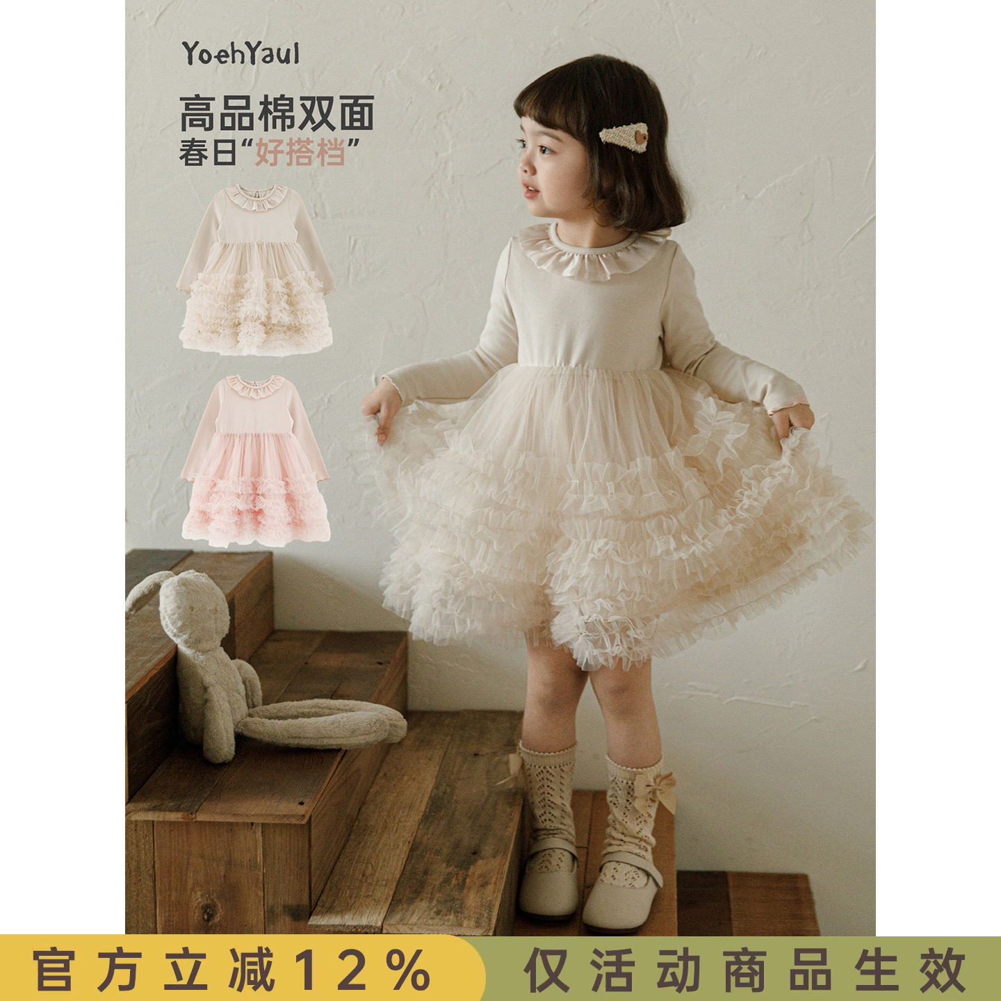 幼悠 女童春季新款甜美网纱连衣裙小女孩公主裙时髦可爱儿童裙子