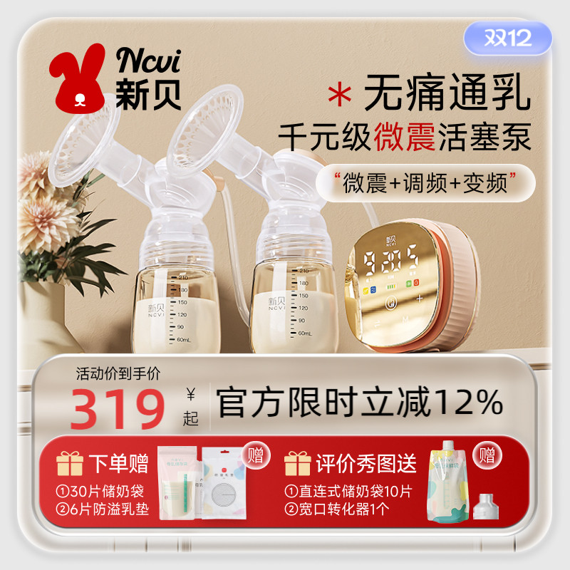 新贝双边电动吸奶器无痛便携智能变频静音正品全自动大吸力挤奶器