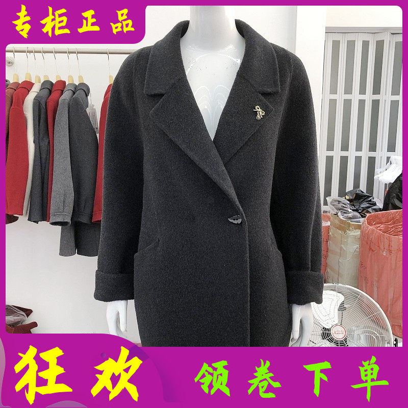双面羊毛大衣女中长款西装领修身气质妮子秋冬新款高端羊毛呢外套