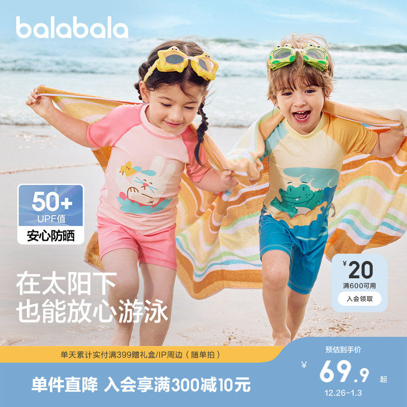 巴拉巴拉儿童泳衣男童女童宝宝连分体泳装防晒速干泡温泉潮泳衣裤