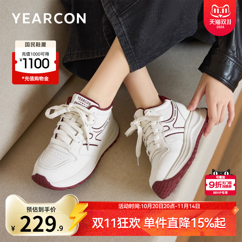 意尔康女鞋2025冬季新款加绒保暖运动休闲皮鞋高帮厚底小白鞋软底