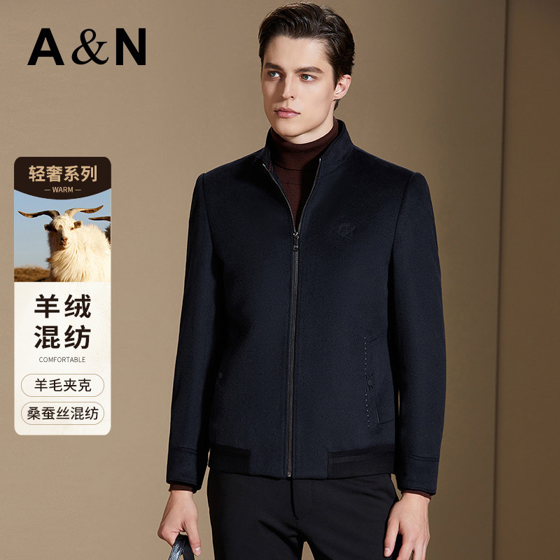 【山羊绒&羊毛桑蚕丝】AntonNeal轻奢商务立领毛呢夹克男呢子外套