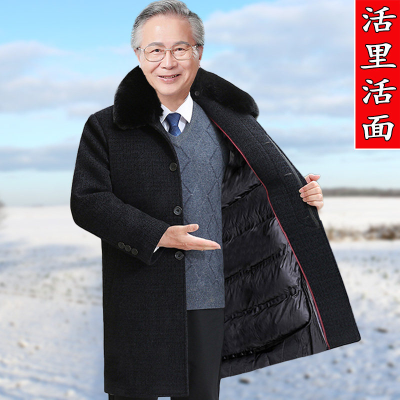 70岁老年人毛呢大衣男长款过膝中老年男呢子外套加绒加厚爸爸冬装