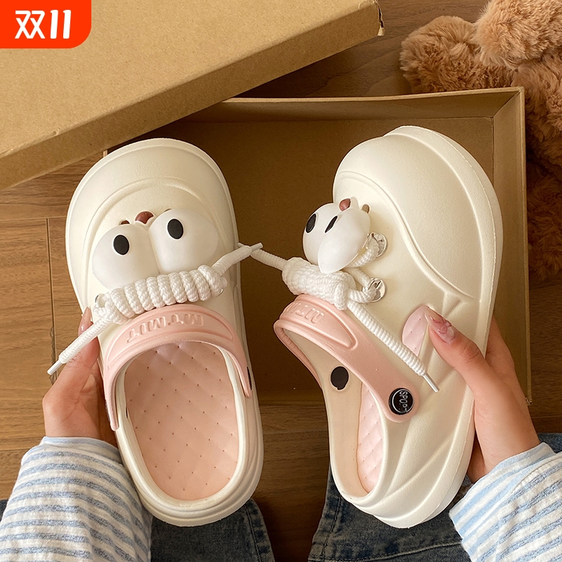 大眼睛厚底洞洞鞋女夏季韩版透气超火外穿防滑可爱包头鞋带凉鞋女