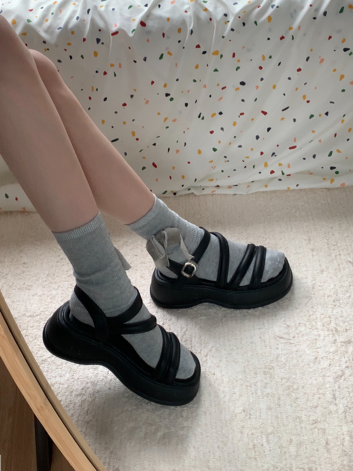 细细条 韩版ins原宿港风复古双带拖鞋女夏学生厚底沙滩鞋外穿凉鞋