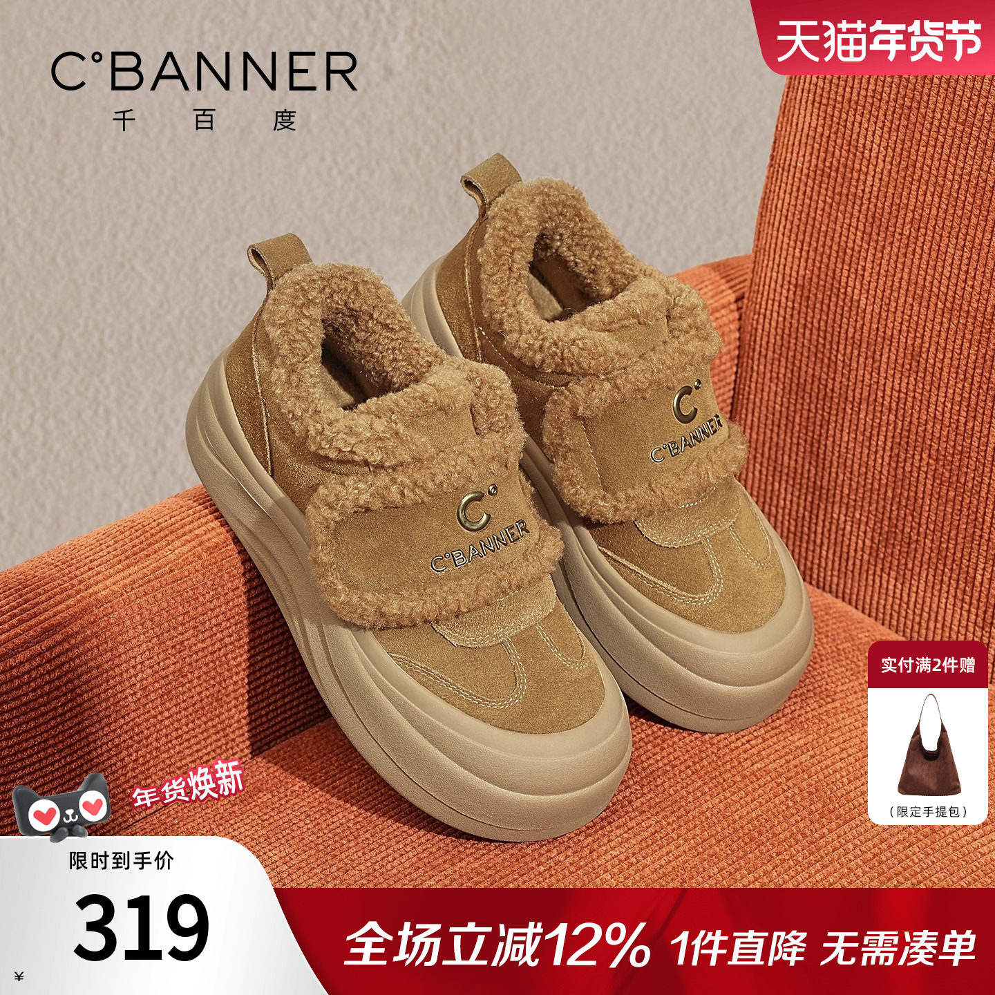 - 加绒平底女单鞋