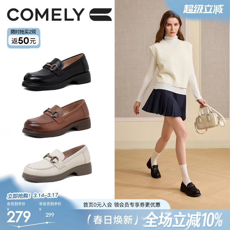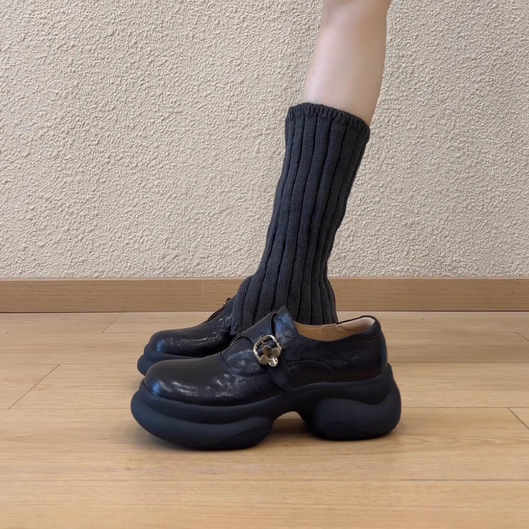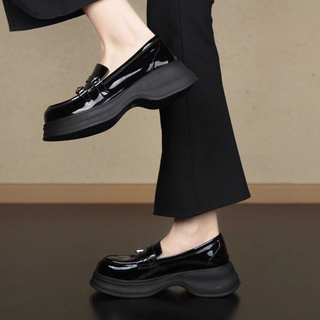 【三卷】学院风甜酷厚底圆头小皮鞋2026春新款小个子踩屎感乐福鞋