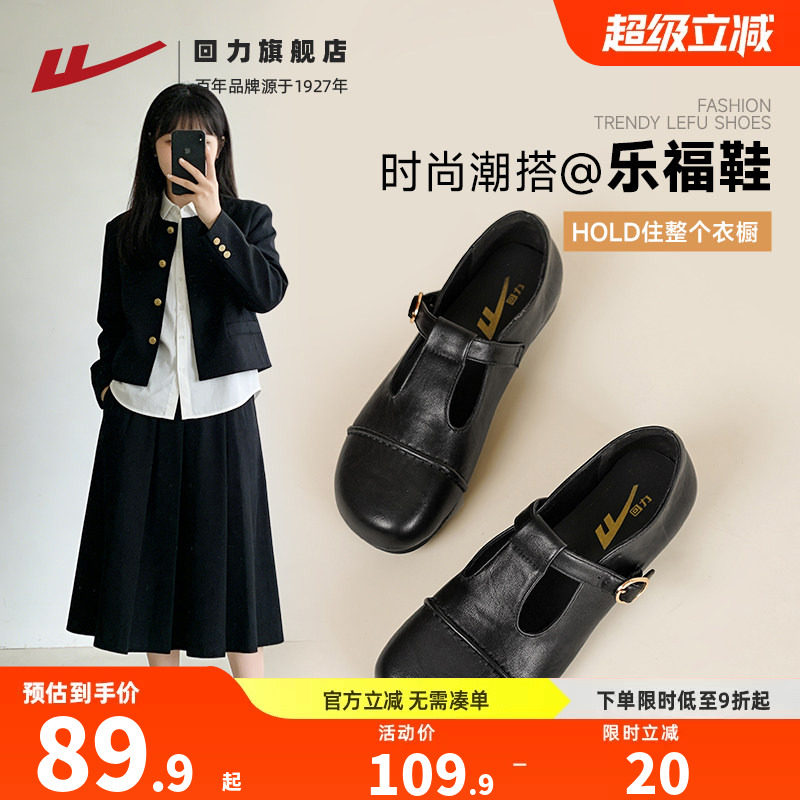 回力乐福鞋女款2026春季日系复古T字玛丽珍单鞋学院风小皮鞋圆头