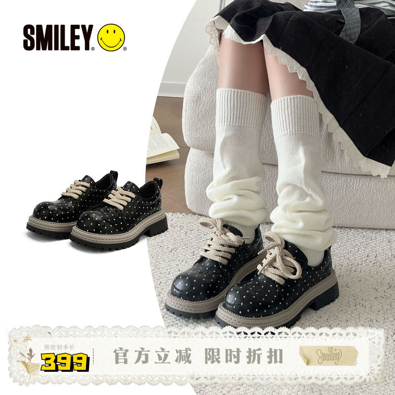 SMILEY笑脸黑色波点女小皮鞋德比鞋乐福鞋增高春季圆头学院风休闲