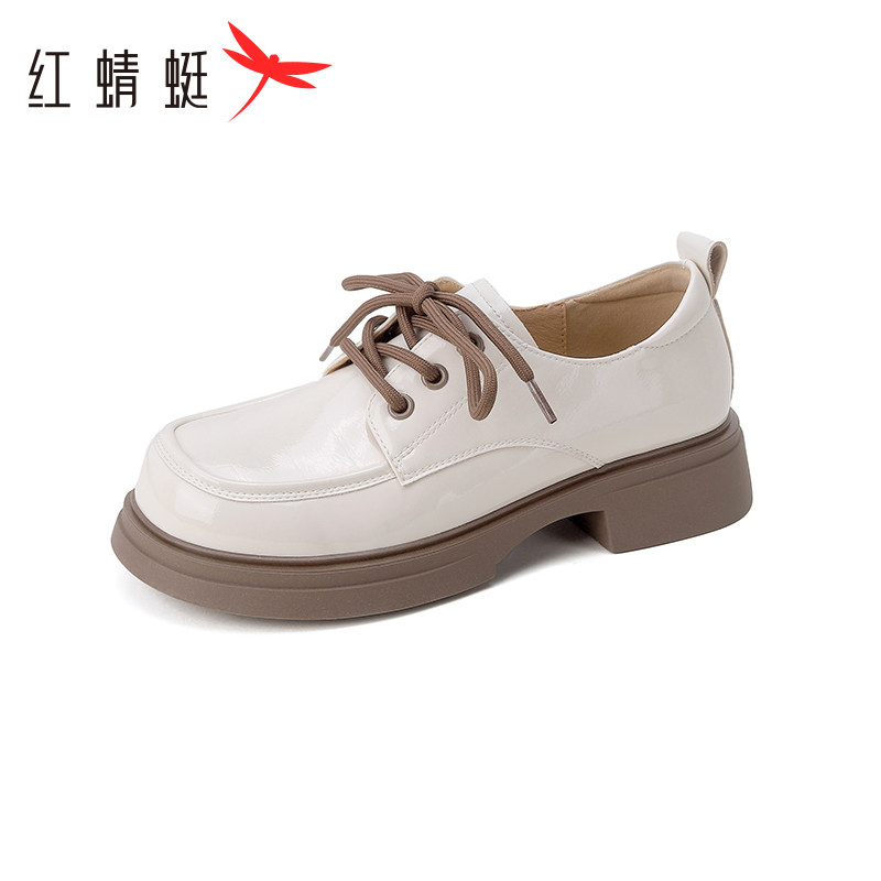 红蜻蜓厚底小皮鞋女2024新款女鞋乐福鞋系带圆头英伦风学院单鞋