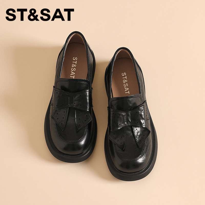 星期六乐福鞋女鞋新款圆头蝴蝶英伦风女一脚蹬复古学院单鞋小皮鞋