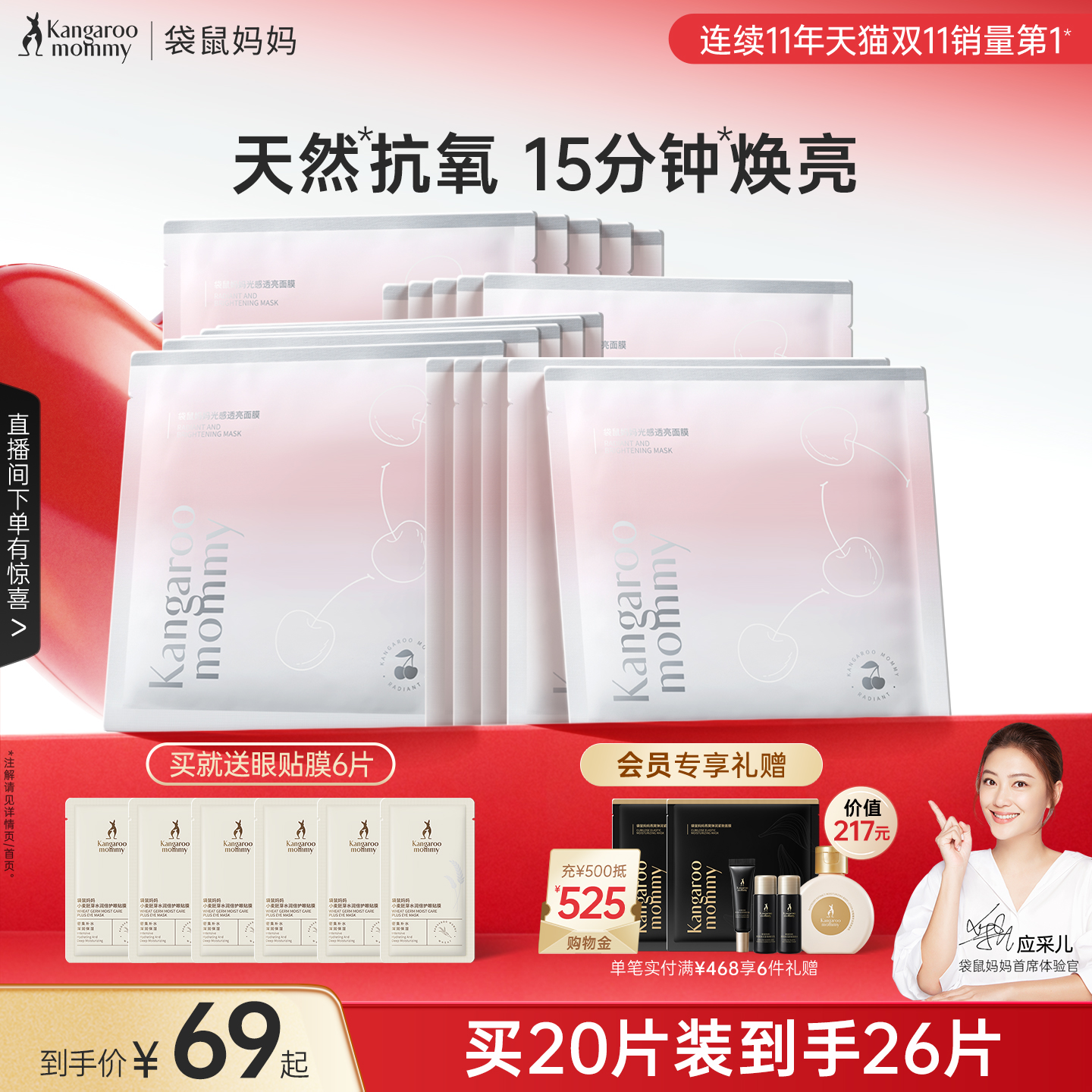 袋鼠妈妈光感透亮面膜补水女保湿去黄抗氧化多肤质专用孕妇护肤品