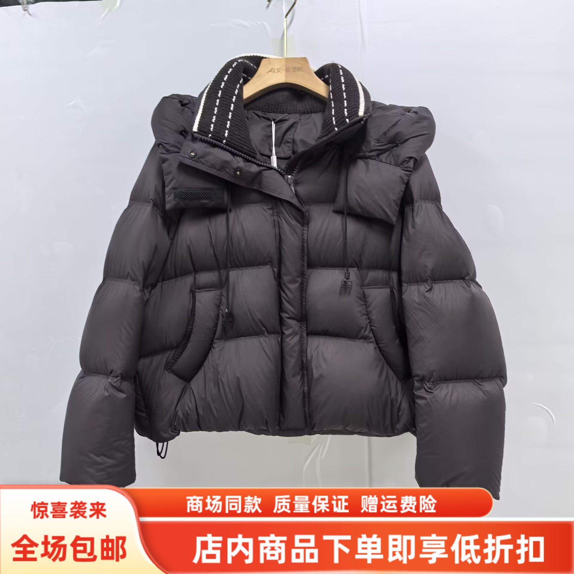瑞景媛25D530冬装2025女新款休闲白鸭绒保暖连帽可拆羽绒服短外套
