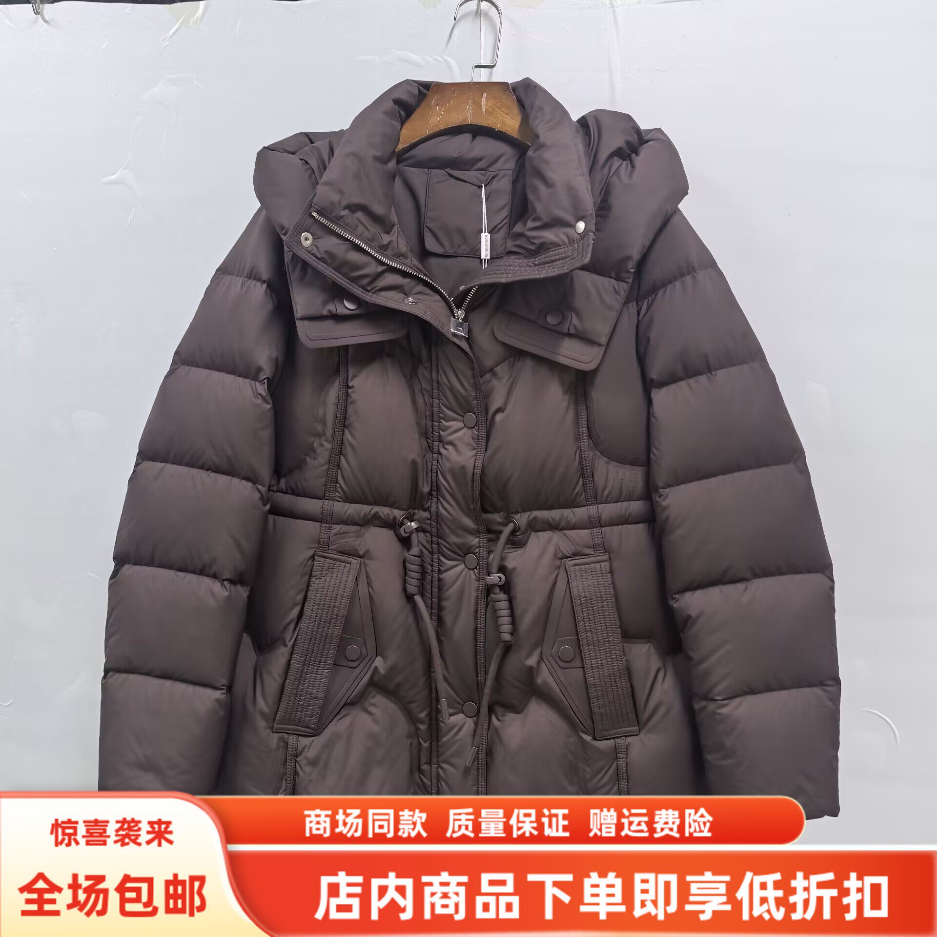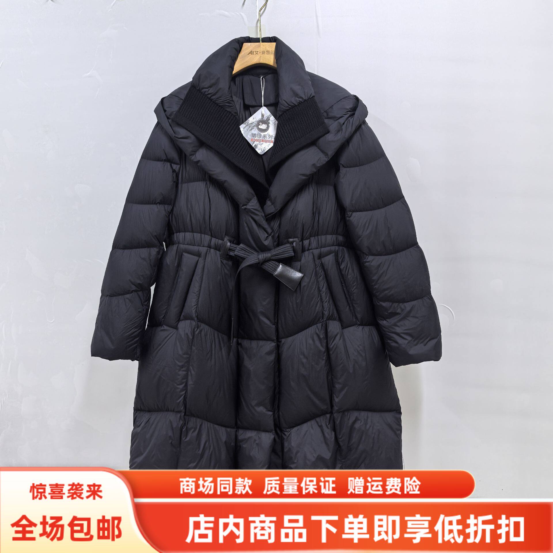 瑞景媛25D511冬装2025女新款休闲减龄连帽系带保暖长款鹅绒服外套