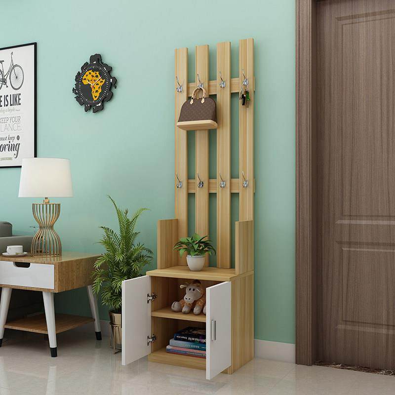 现代简约衣帽架鞋柜带挂衣架一体落地式卧室门口衣帽柜家用门厅柜