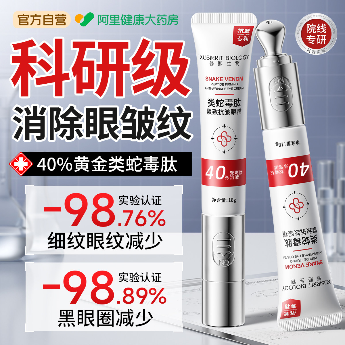 类蛇毒肽眼霜抗皱紧致抗衰老去眼袋淡化黑眼圈细纹提拉按摩头男女