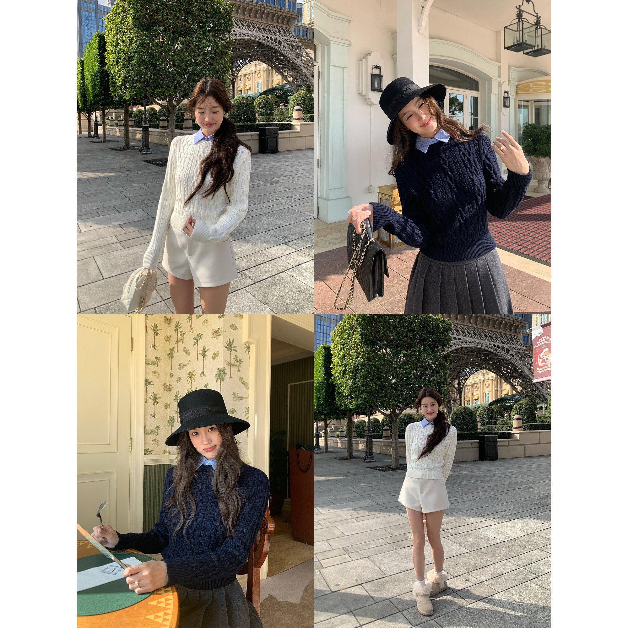pusumede 可拆卸衬衫领丨假两件麻花毛衣女设计感修身针织衫上衣