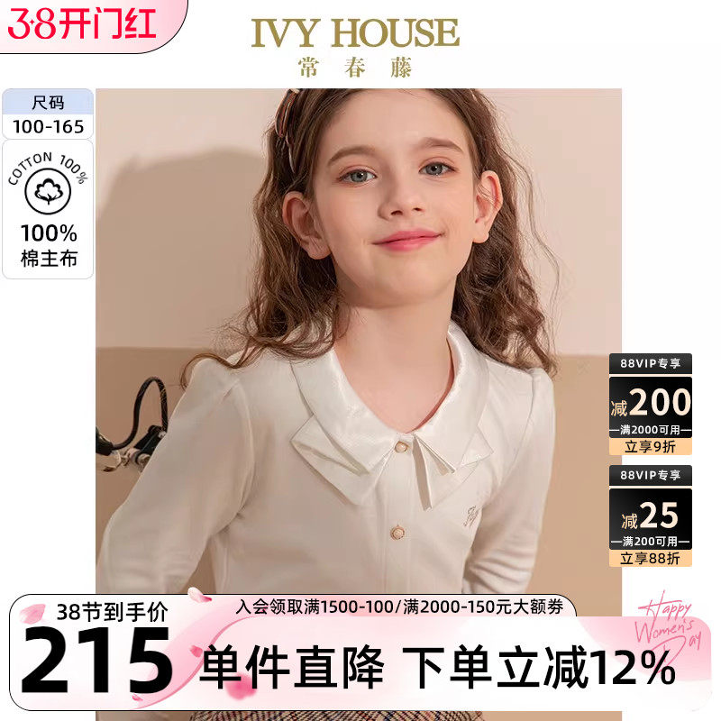 IVY HOUSE常春藤儿童装女童针织衬衫 洋气学院风娃娃领上衣亲子装