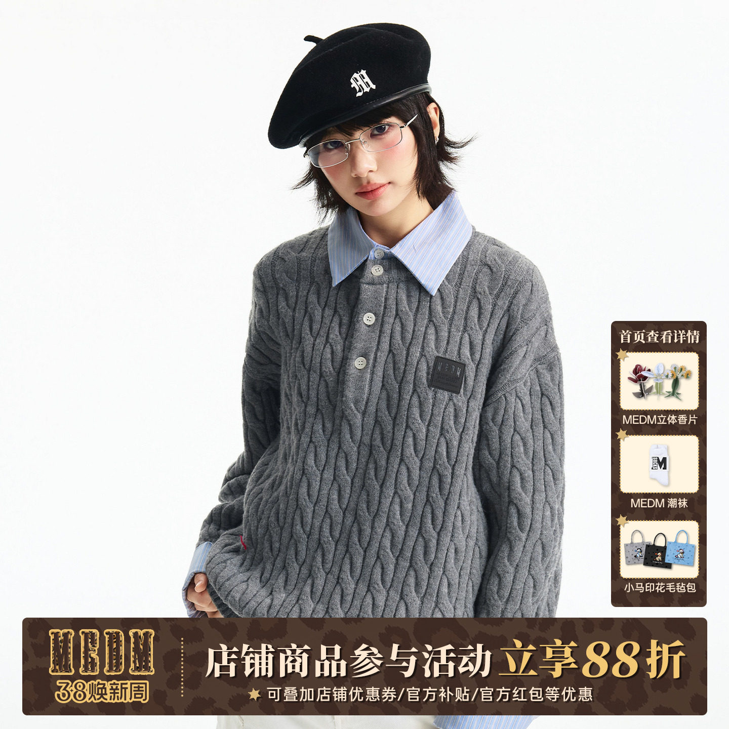 MEDM 套头假两件衬衫领袖亨利衬衫领休闲毛衣简约男女套头针织衫
