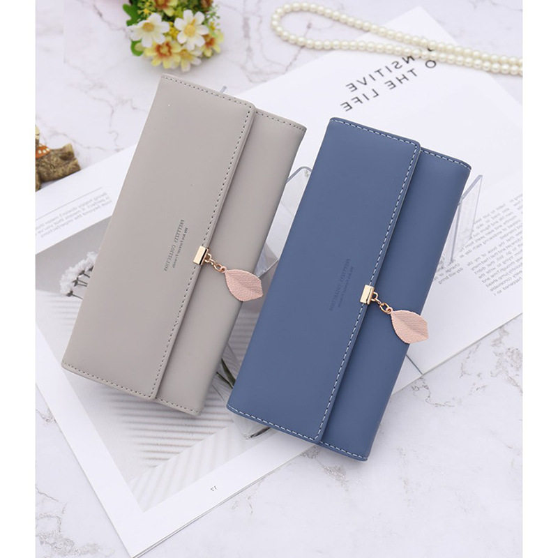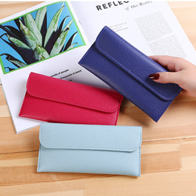 女士长款钱包三折日韩小清新拉链搭扣简约纯色多卡位学生女零钱包