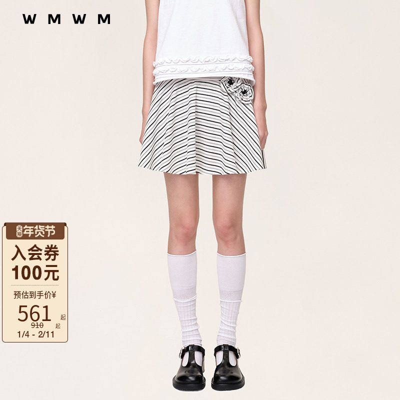 【WMWM】时尚百搭潮流条纹钉珠手工花短裙流行秋冬休闲女装裙子