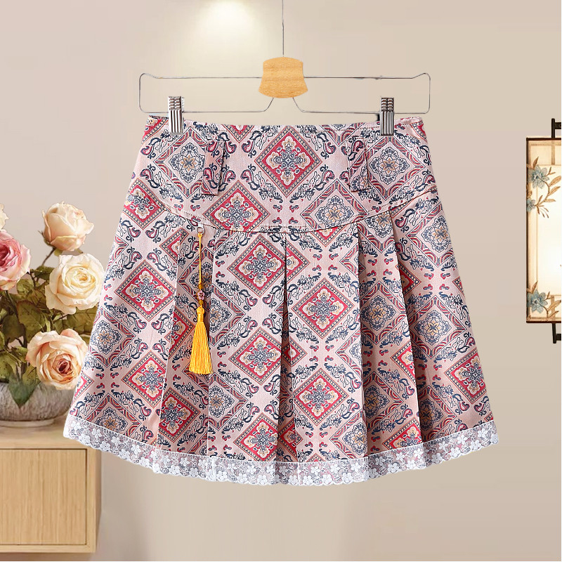 半身裙复古民族风大码蕾丝花边织锦提花短裙气质轻奢半裙子防走光